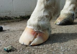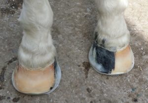 Surprisingly the horse was walking sound, with no sign of lameness. Sole had regenerated on both front feet just healing across the toe; the right fore was the most vulnerable. He was having restricted turnout. All appeared to be going well.